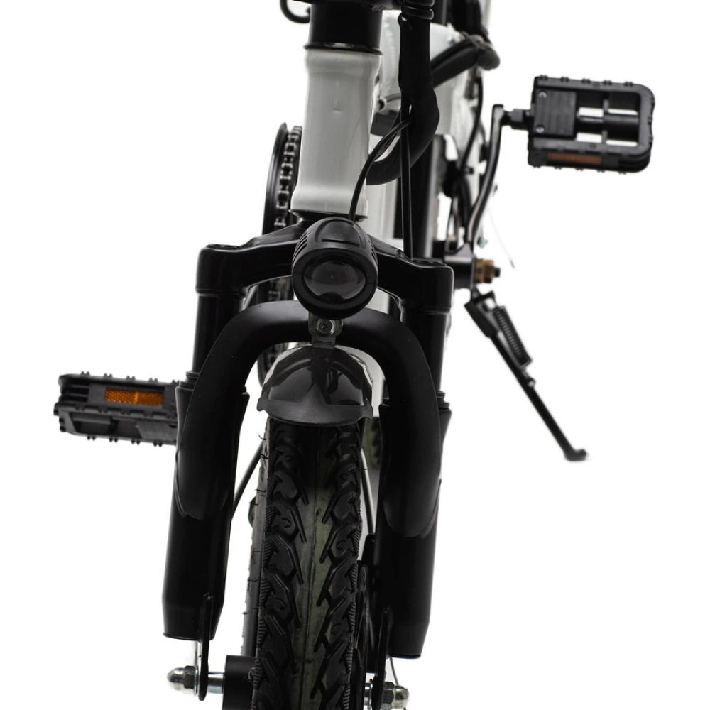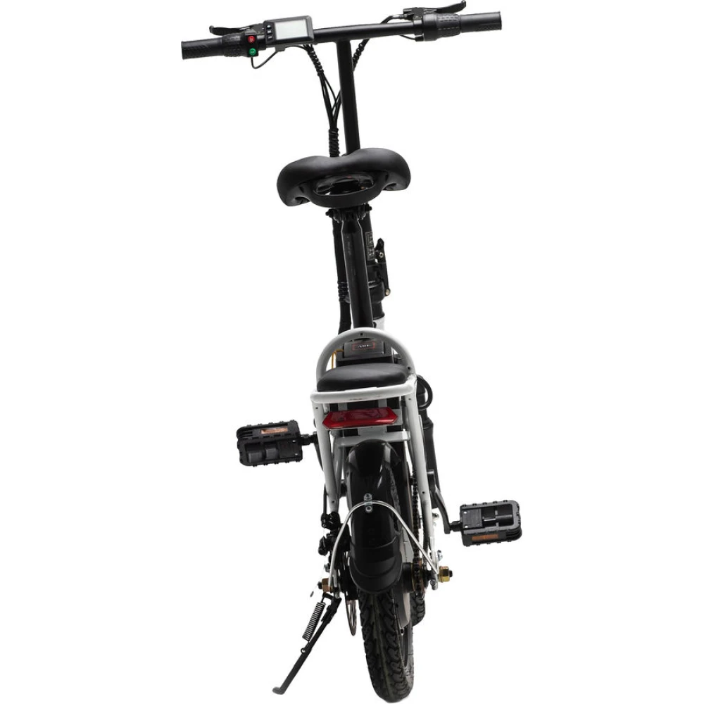 Устройство выдерживает максимальную нагрузку пользователя до 100 килограмм, а само весит всего 24 килограмма. Наш интернет-магазин предлагает вам приобрести электровелосипед по 100% предоплате, чтобы мы доставили его до вашей квартиры в любой регион России абсолютно бесплатно. Аккумулятор девайса даст возможность проехать до 40 километров без подзарядки, а заряжается всего за одну ночь – от 0 до 100 процентов за 7 часов. Колеса среднего диаметра - всего 14 дюймов, но и этого хватает для обеспечения отличной проходимости и мягкости хода девайса. У этой модели довольно большая мощность и проходимость, что объединяется в совокупности с высокой компактностью.